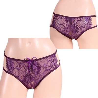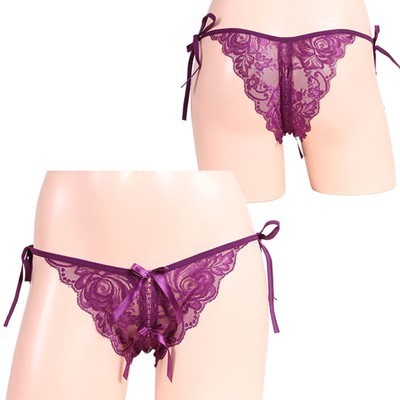 女らしさ満開サイドリボンオープンショーツ パープル パープル