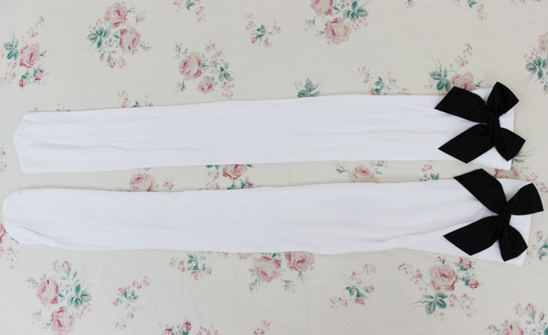 top > お買い得 > お買い得商品 > 【420円★数量限定】リボン付きニーハイ 白×黒リボン<お一人様1点限り>