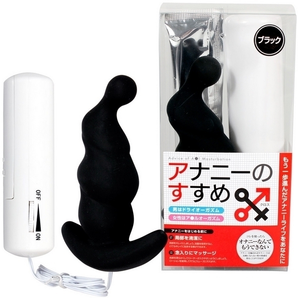 大好評の「アナニーのすすめ」が男女兼用になって登場!電動アナルグッズ「アナニーのすすめX(クロス)ブラック」。 ●本体挿入長8cm、最大径3.2cm●若干太め仕様のブラックカラー●ストッパー兼グリップ付き●無段階強弱の振動機能を搭載●簡単ダイヤル式コントローラー●単四電池×3本付属(動作確認用)●パウチローション12mlもセット。 更なるドライオーガズムの世界へようこそ!ピンクタイプ( v01360)に比べて若干太めに仕上げたブラックタイプは、アナニーの快感に目覚めた方にお勧めなサイズ。 男性女性問わず使える凸凹フォルムのアナルバイブで、もう一歩先へ進んだアナニーライフをご提供します。